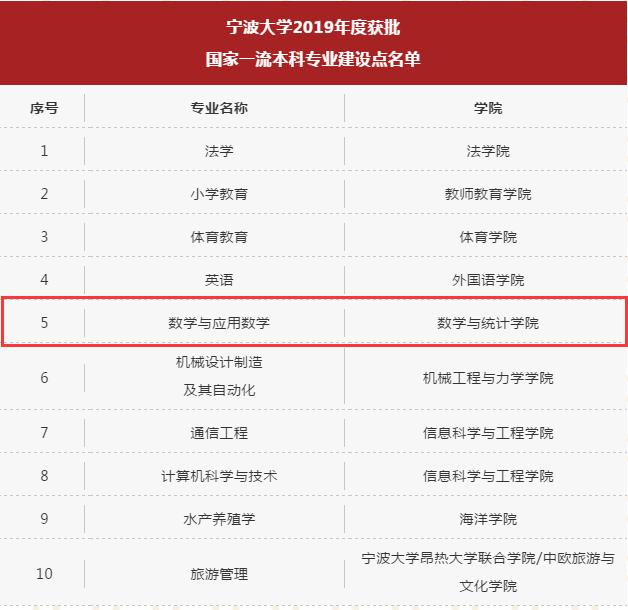 近日,教育部办公厅印发了《关于公布2019年度国家级和省级一流本科专业建设点名单的通知》(教高厅函〔2019〕46号),我院数学与应用数学专业获批首批国家一流本科专业建设点,成为全校仅10个入选国家一流本科建设的专业之一,学院也成为全校同时拥有一级学科博士点建设和国家一流专业建设的4个学院之一。