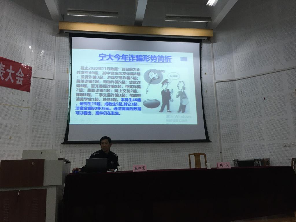 秦警官结合今年发生在宁大的真实案例,讲解了冒充金融客服诈骗、网络购物诈骗、网络兼职诈骗、淘宝刷单诈骗、中奖诈骗、杀猪盘诈骗、裸聊诈骗等十多种诈骗类型,阐述了诈骗对社会、家庭和个人造成的巨大危害,要求广大师生提高防范意识,遇到电信或者网络诈骗采取不理会或者举报的方式,切莫因贪小便宜的心理而遭受损失。如果接到 “公检法”来电,一定要保持冷静,向老师和学校保卫部门求助,必要时可以拨打110求证,千万不要盲从对方的要求。讲座的最后,秦警官提出了防诈骗的“六个一律”:只要一谈到银行卡,一律挂掉;只要一谈到中奖,一律挂掉;只要谈到电话转接“公检法”的,一律挂掉;所有短信让我点击链接的,一律删掉;微信不认识的人发来的链接,一律不点;一提到“安全账户”,一律是诈骗。