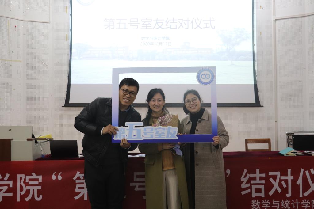 今年共有3名老师、15名学生干部、38名学生党、7名研究生与各新生寝室成功结对。活动中,老师室友、学生干部室友代表、党员室友代表纷纷上台与自己结对的寝室代表合影留念。最后姜萍老师对在座的第五号室友提出了要求,希望他们以后能够在思想、学习、作风、习惯等方面起引领作用。此外,姜老师还希望将“第五号室友”打造成数学学院的品牌活动,使它成为数院学子相互交流、共同成长的有效平台,努力构建更加和谐美好的学院学风和寝室卫生环境。
