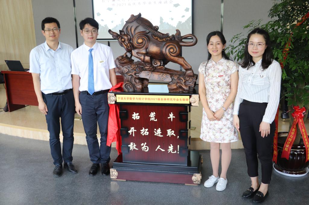在即将离校之际,本科和研究生毕业生分别集体为学院众筹捐“感恩幸福树”绿植和“拓荒牛”木雕。“感恩幸福树”表达了2021届本科生毕业生对学院的培养和老师的感恩之情;“拓荒牛”木雕表达了毕业研究生对学院培养辛勤付出的感恩和对新学院奋发图强的期许。
