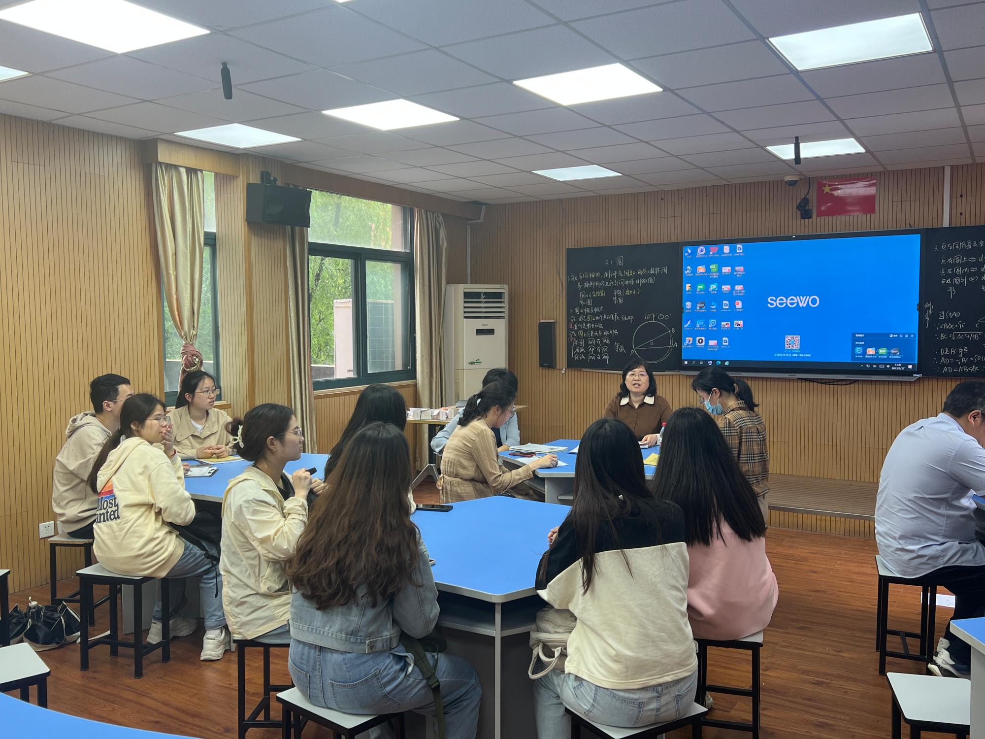 随后,同学们观摩学习了初中数学公开课。在专家讲课环节,鄞州区教育局教研员王老师详细点评了四位数学公开课授课教师的优缺点,点明新时代背景下中小学数学教育工作的发展趋势,鼓励在校的优秀师范生积极实地参与到教学环节中去,以此激励宁大数院的师范生们树立远大理想,牢记立德树人根本任务。