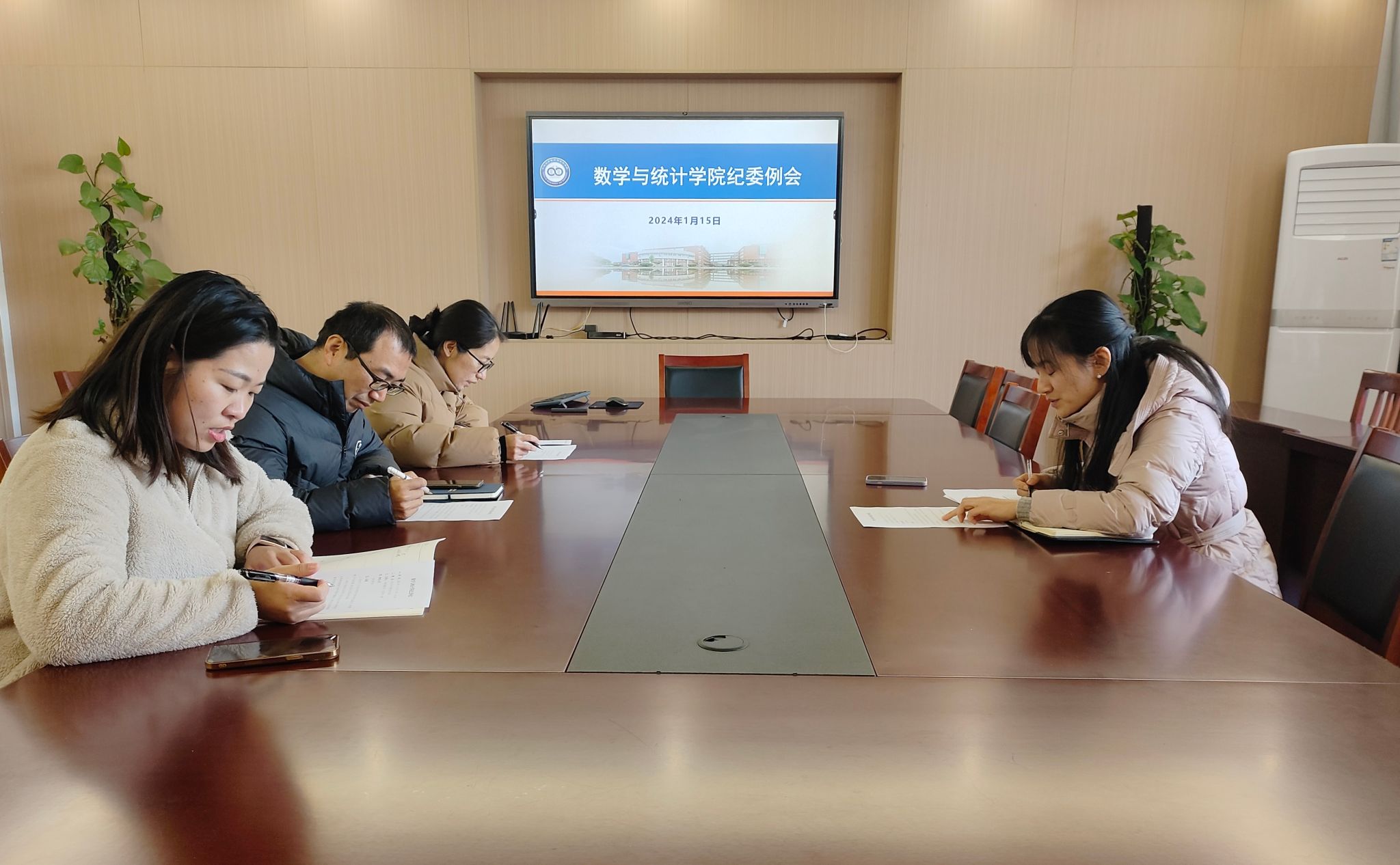 纪委在218会议室召开工作例会,会议由学院党委副书记、纪委书记姜萍主持,学院纪委委员参会。