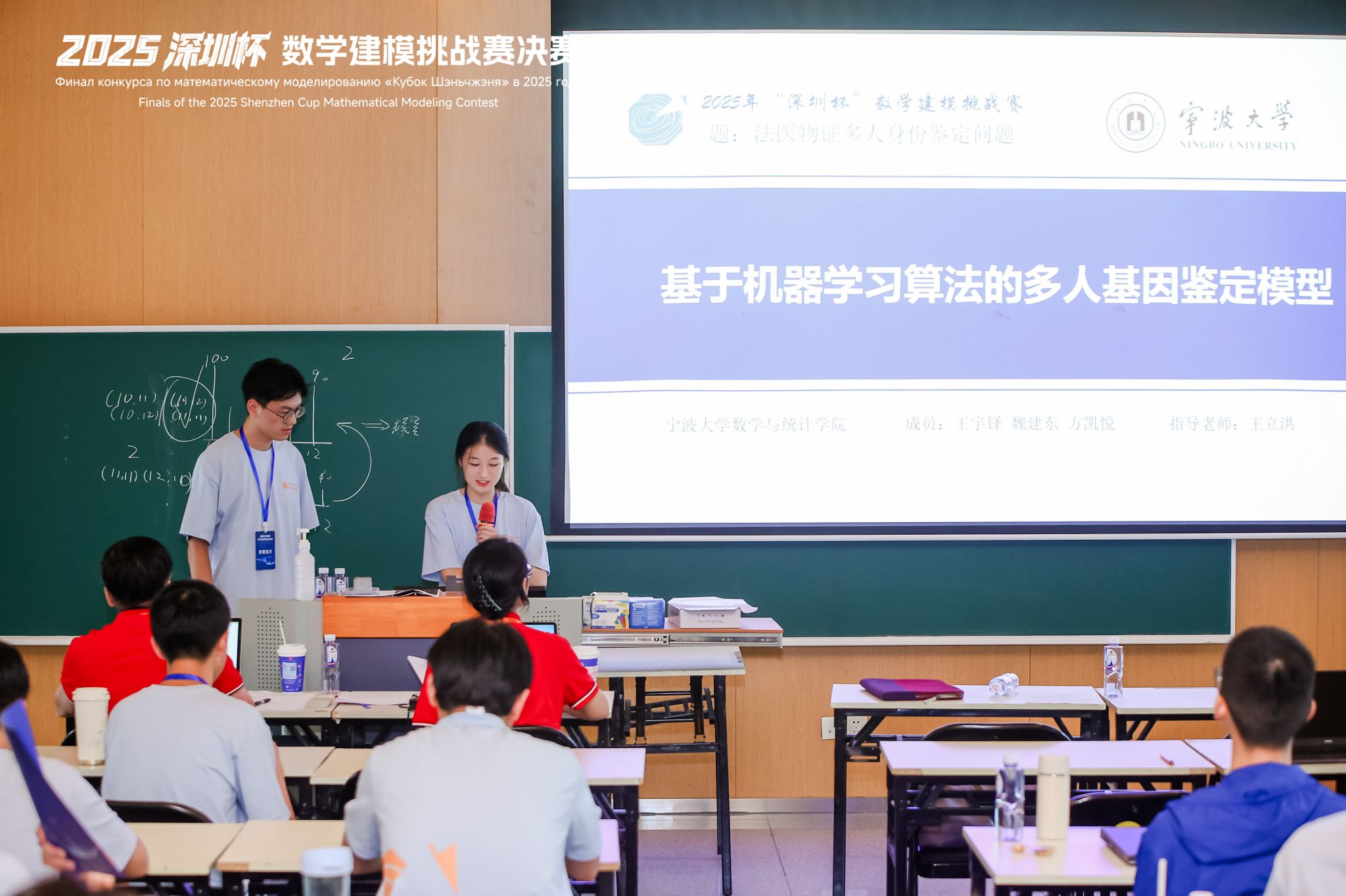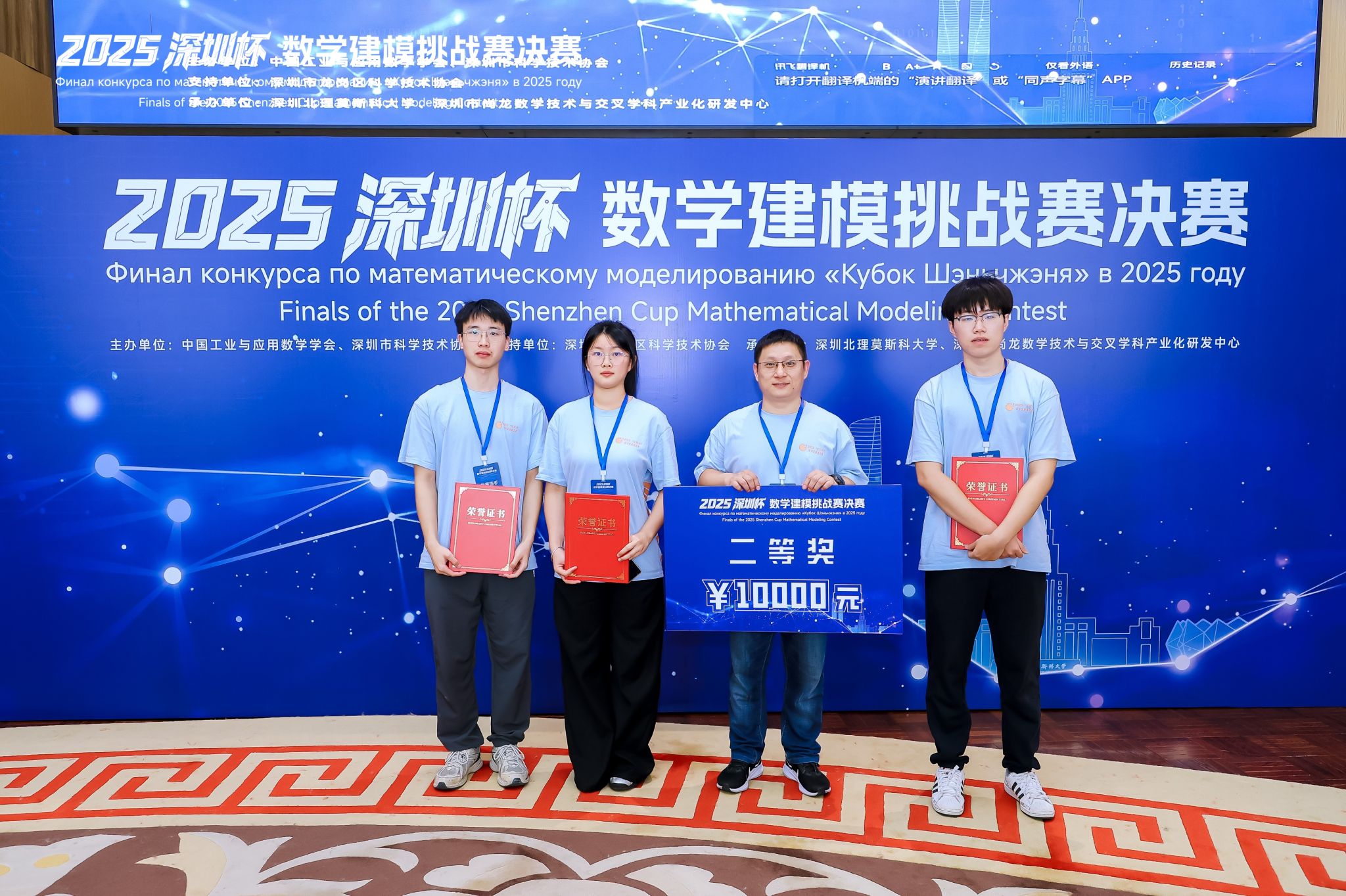 于2025年8月24-28日期间在深圳北理莫斯科大学举行盛大的决赛。宁波大学由数学与统计学院王立洪老师带队,其中B题参赛队伍由机械学院梁智鹏、王睦涵、徐晨莱和商学院李佳同学组成;D题参赛队伍由数学学院魏建东、王宇铎、方凯悦组成。在决赛答辩中,两支队伍展现了出色的数学建模能力和创新思维,得到评委高度认可。