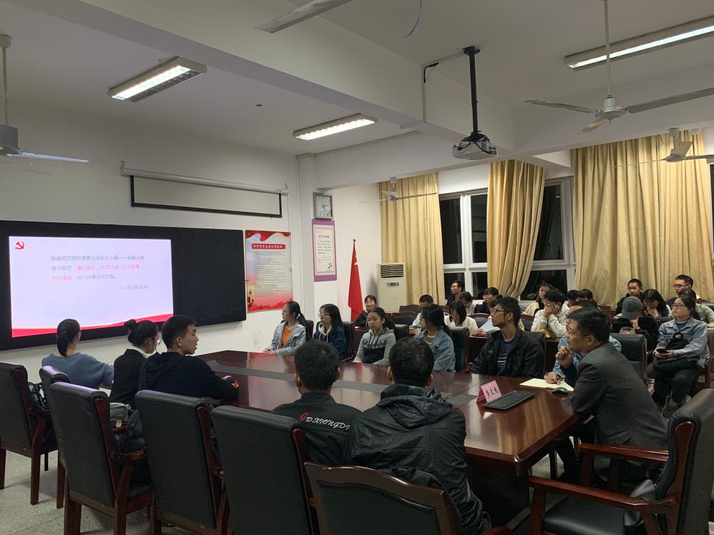 11月20日傍晚,数学与统计学院分党校第二期积极分子培训班第四次专题讲座在学院116会议室顺利开讲。学校党委办公室、校长办公室副主任龚文杰为积极分子学员带来题为“信念,奋斗,担当”的一堂深入浅出、内容丰富的党课。