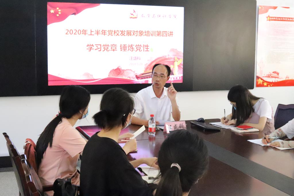 5月20日下午,我院2020年分党校发展对象培训班第五讲学院116会议室举行。资产与实验室管理处处长汪盛科为学员们带来主题为学习党章、锤炼党性党课