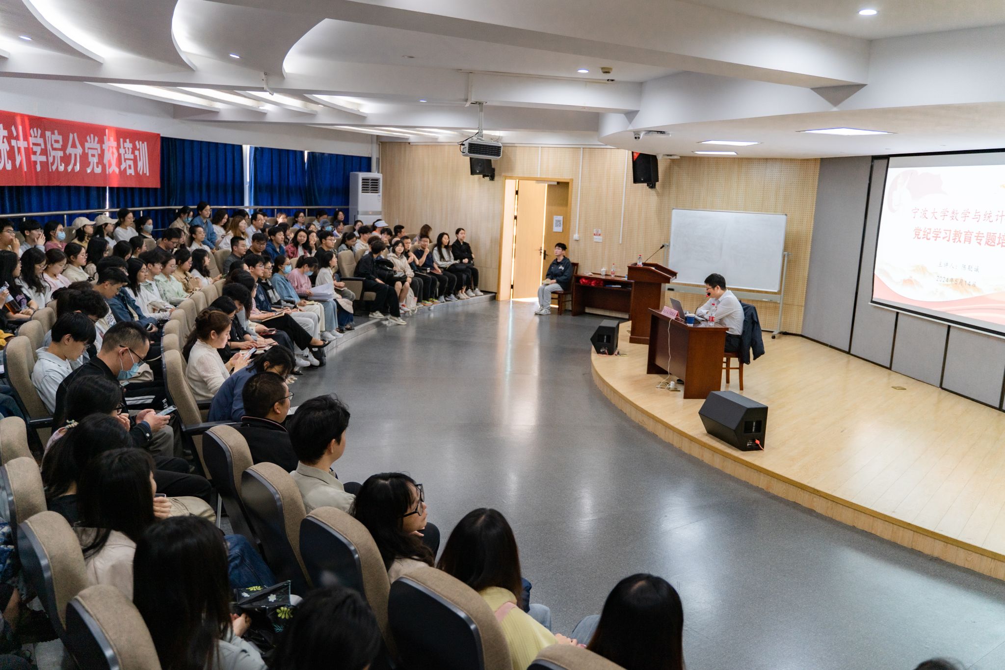 为深入学习贯彻习近平总书记关于党纪学习教育的重要讲话和重要指示精神,推动师生党员学纪、知纪、明纪、守纪。5月14日中午,数学与统计学院党委组织师生党支部和分党校学员共130余名,共同开展党纪学习教育专题培训。宁波文化百科大讲堂讲师、宁波市廉洁文化高校讲师团成员、浙江纺织服装技术学院研究员陈聪诚为大家深度解读了《中国共产党纪律处分条例》的发展历程和修订的重要内容。