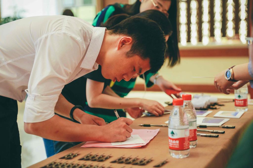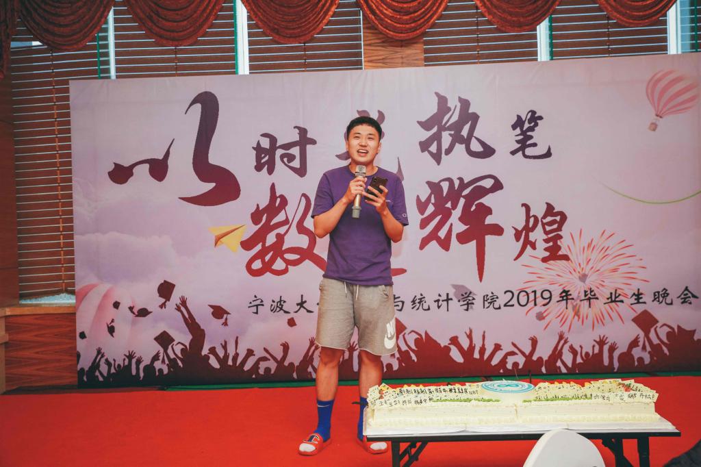 6月21日晚,数学与统计学院2019届毕业生晚会“以时光执笔,数造辉煌”在宁波大学宾馆六合礼厅举办。院长屈长征、院党委书记俞金波、副院长曹炜、胡良根、李传忠及教师代表和140余名毕业生欢聚一堂,共度难忘时光。傍晚,师生走红毯仪式正式开始,他们着盛装、佩戴专属定制胸牌并手持印有“数学学院永远爱你”字样的3D旋屏纪念品,或牵手或相拥或与舍友相伴一同走过属于他们的毕业之路。在签名墙上,毕业生们郑重签下自己的名字,作为他们大学时代的结束和人生新起点的开始。一字一笔一划间,流露着他们对大学时光的留念和回顾,更表达了对未来美好前程的憧憬和向往。