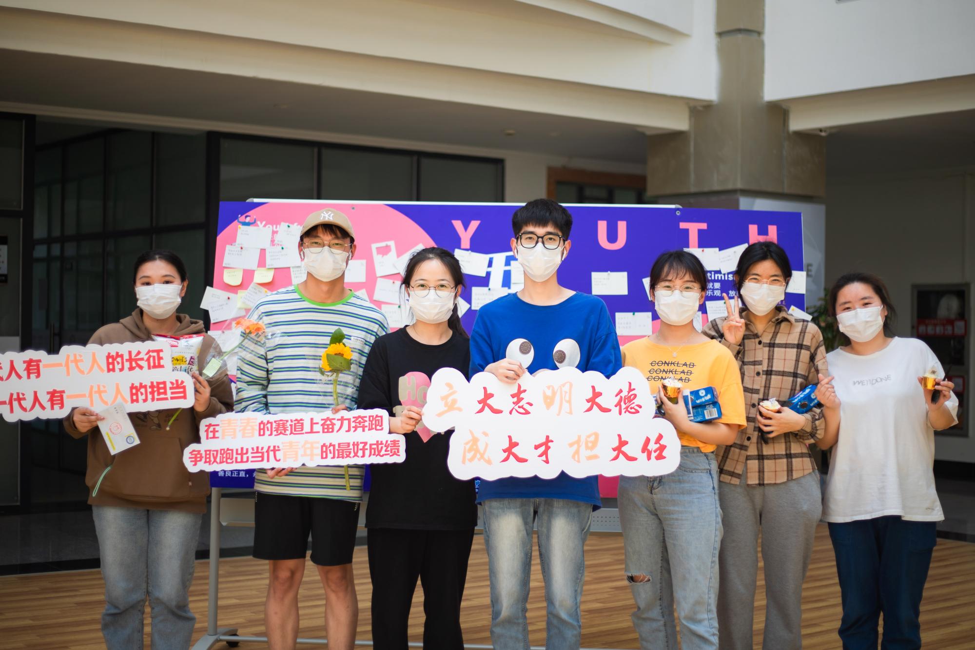 5月4日,数学与统计学院开展““喜迎二十大、永远跟党走、奋进新征程”主题教育活动,团员青年们用自己的方式庆祝五四青年节,坚定听党话、跟党走的信心和决心。