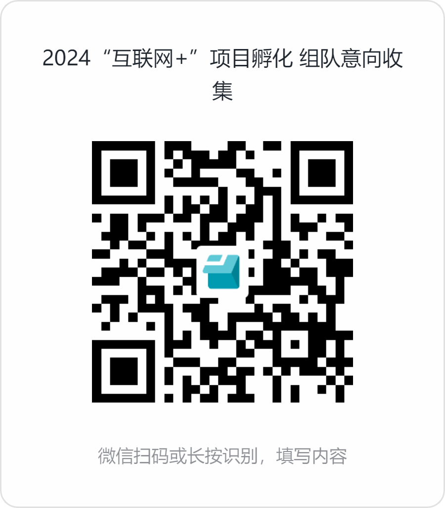 1.前期准备。为了更有效地推动2024年“互联网+”大赛的项目孵化工作,同时协助有意愿参赛的同学们组建团队,学院决定开展针对性的菜单式服务。现推出三项“青年红色筑梦之旅”类别的选题,请有意向的同学填写以下问卷,以便我们更好地了解大家的组队需求。如有其他课题,请联系团委孔家辉老师申报。(后续会由学院团委科创部根据填写志愿协助大家组建队伍)。