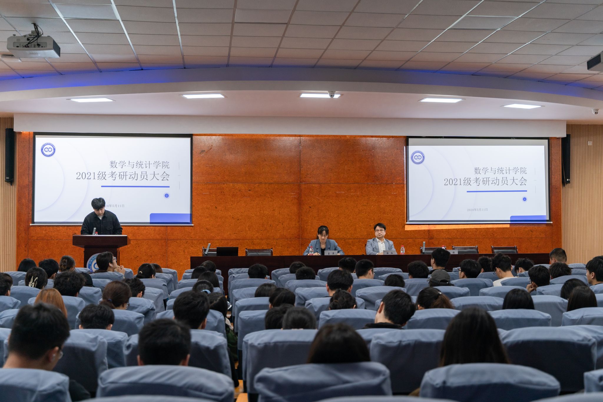 为加强学风建设,提高学生考研热情,5月11日,数学与统计学院组织召开2021级年级大会暨考研动员大会。学院党委副书记姜萍、副院长徐松、精算中心主任王伟、团委书记孔家辉出席会议,2021级全体本科生参加本次大会。