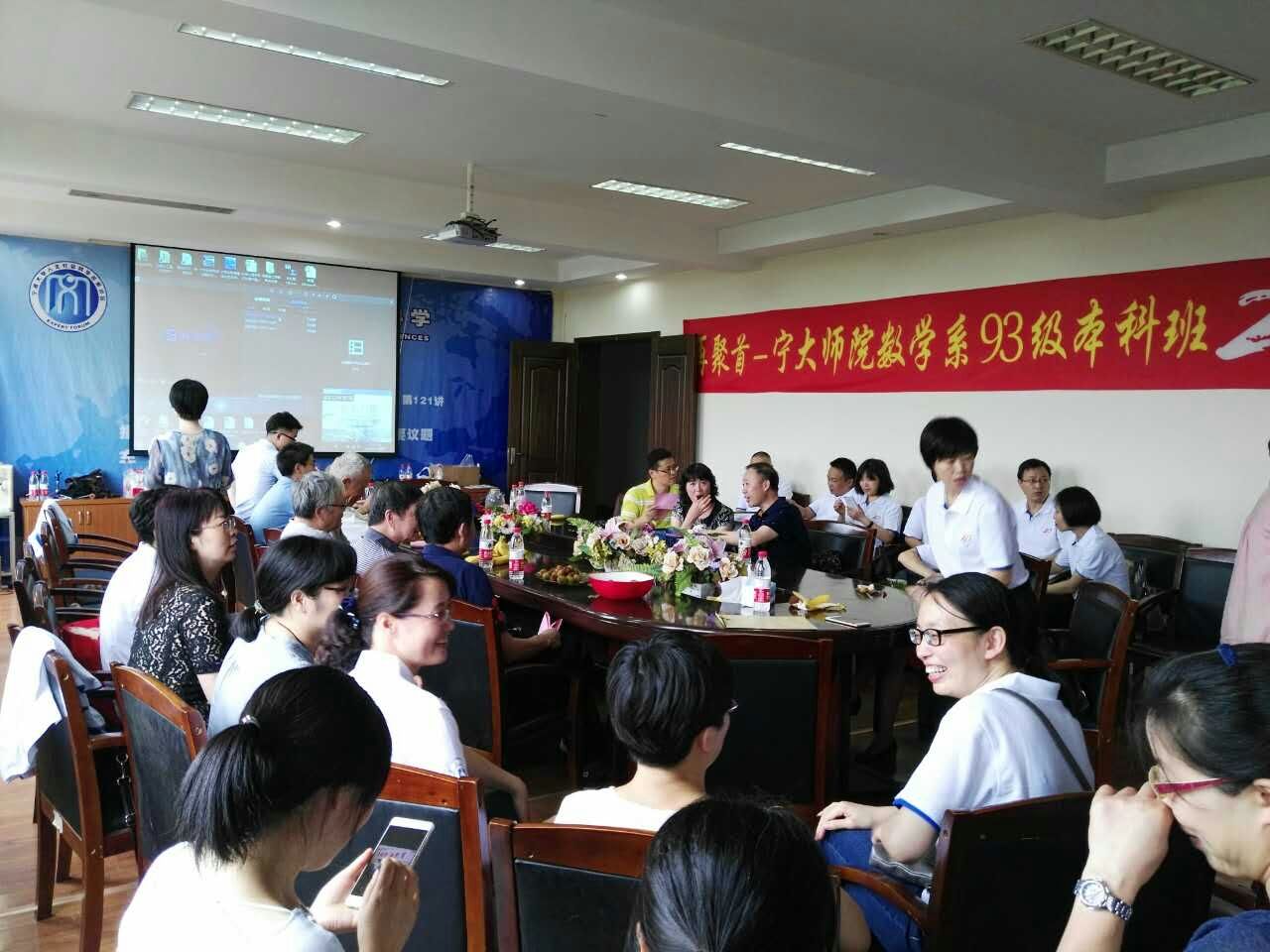 2017年6月24日宁波大学理学院93级数学系师生相约宁波大学西校区博观楼举行20周年同学聚会。20年后重新走进曾经毕业的母校,只为与曾经一起奋斗过的兄弟姐妹再续同学情,与曾经教过自己知识的老师再续师生情,岁月让大家都变了样,或许已忘记了名字,但是依旧记得你的绰号。参加本次聚会的还有10多位93级数学系的任课教师,有随着我们毕业就退休的老教师,也有与我们共同成长的“新教师”。