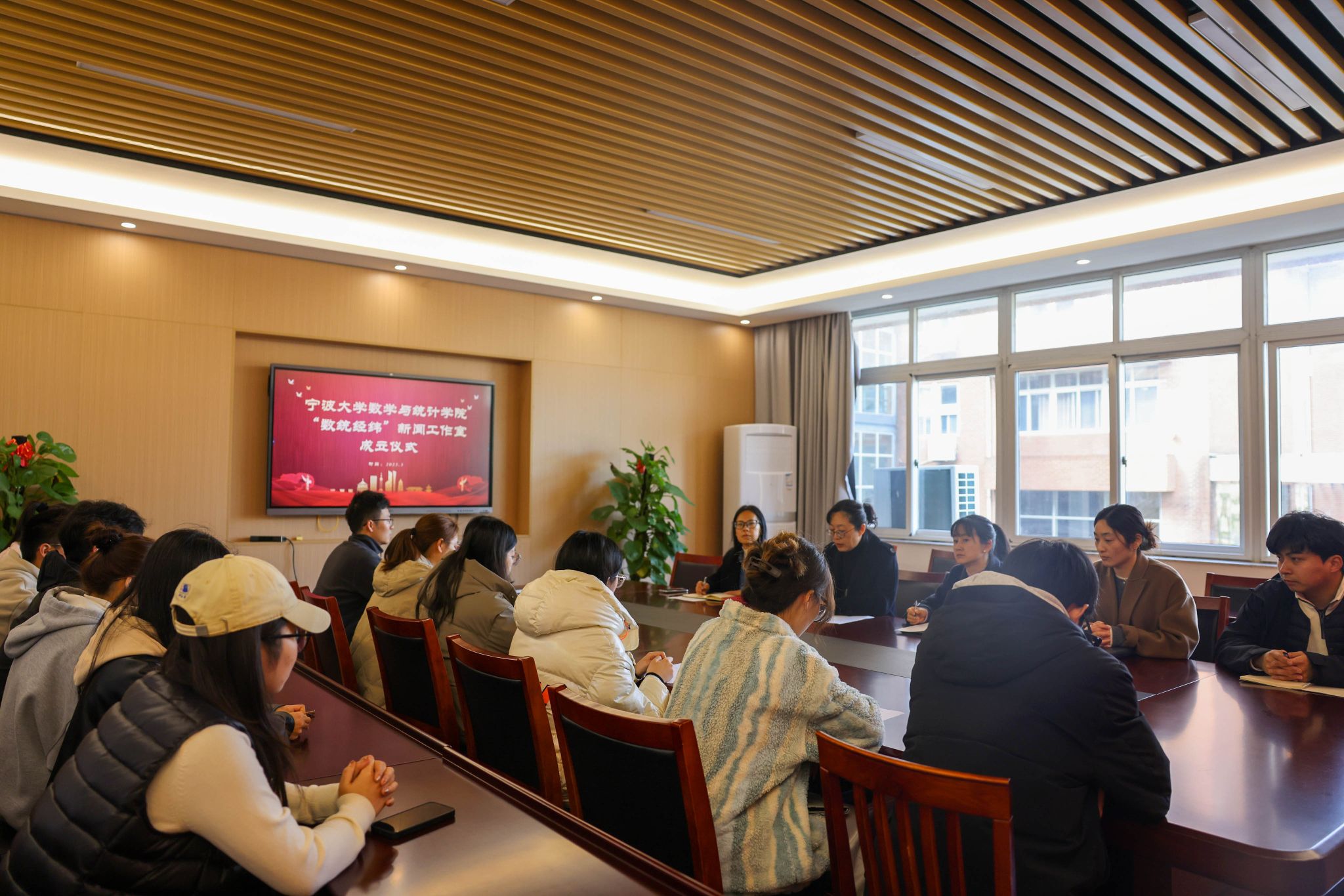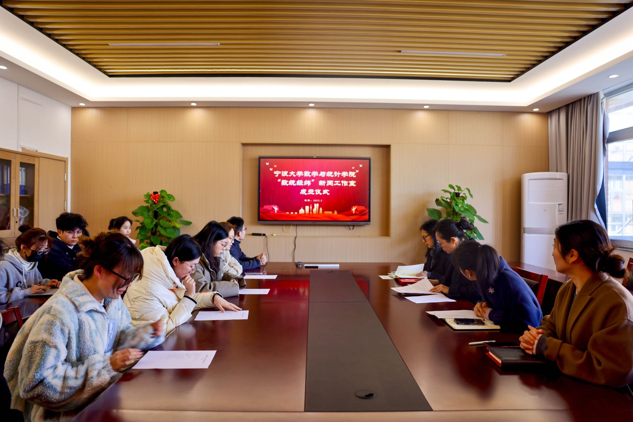 “数统经纬”新闻工作室正式成立,并举行了聘任仪式。仪式由学院党委副书记主持,学院党委书记出席并发表讲话,学院党委委员、学工办主任、分管委书记、工作室成员及各学生社团组织宣传骨干共同见证了这一重要时刻。