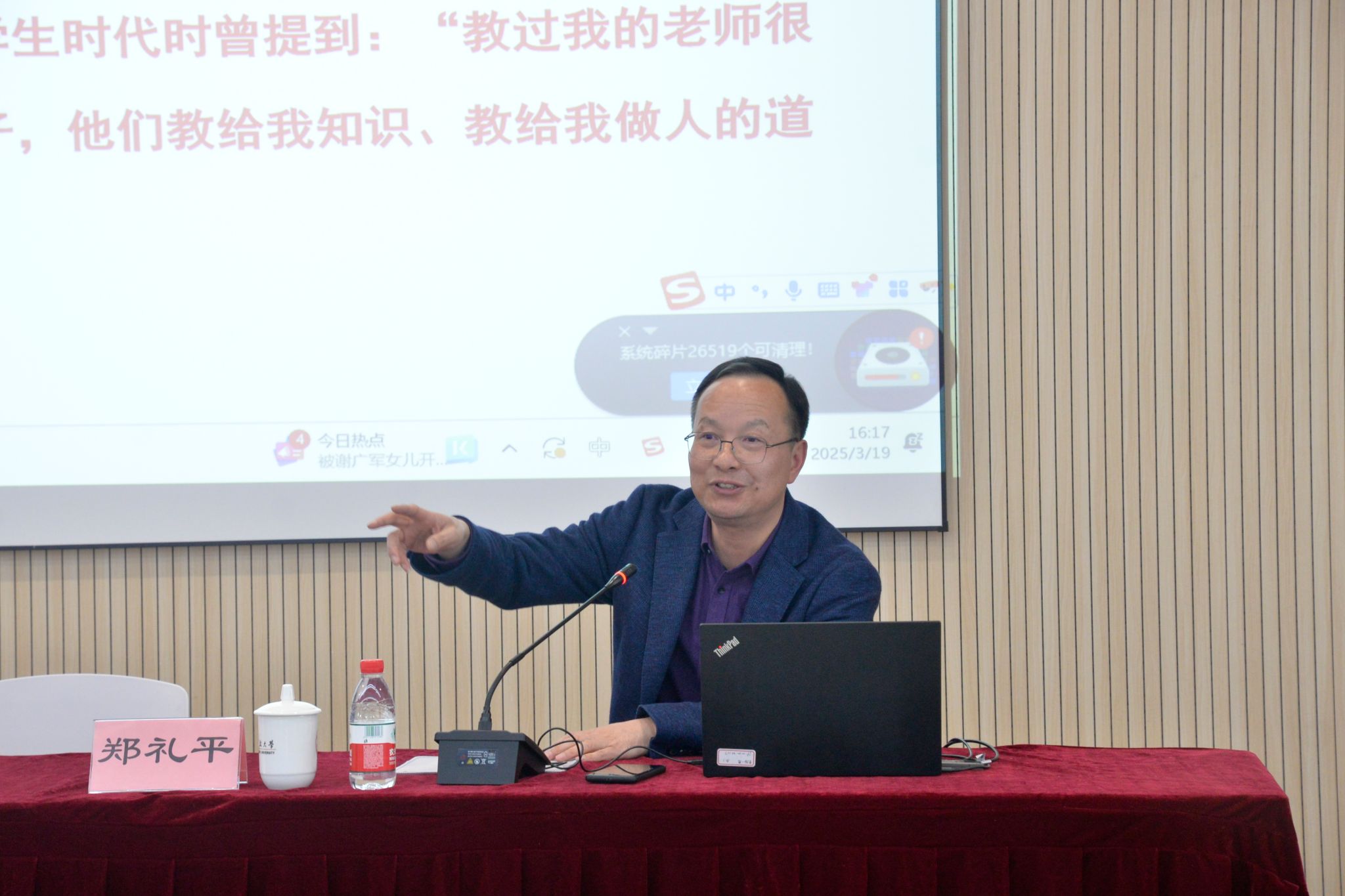 为大力弘扬教育家精神,推动新时代高素质教师队伍建设,3月19日下午,“五老”师德宣讲团教师郑礼平研究员受邀在潘艺学院213报告厅作题为《以教育家精神引领高素质教师队伍建设》的专题讲座。本次活动由成人影视片