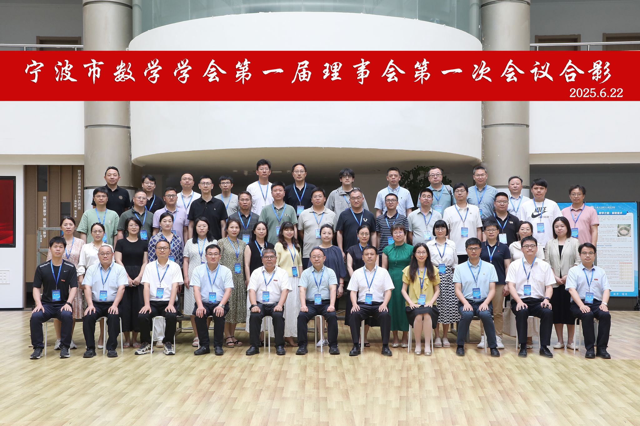 会员大会结束后,宁波市数学学会第一届理事会第一次会议随即召开。会议由理事长屈长征主持,60余名理事参会。会议在功能型党支部书记王志领学《中央八项规定精神学习教育专题》中开启,审议通过了一系列学会社会团体管理制度。屈长征介绍了工作委员会架构,理事会审议通过了各委员会负责人选。副理事长叶琪飞、沈虎跃、毛志平分别汇报了教师发展、拔尖创新人才培养、学术交流与科普工作委员会年度计划,人工智能与大数据委员会主任舒振宇汇报了专项工作计划。两次会议结束后,与会人员分别合影留念,为这一重要时刻留下了珍贵的影像资料。