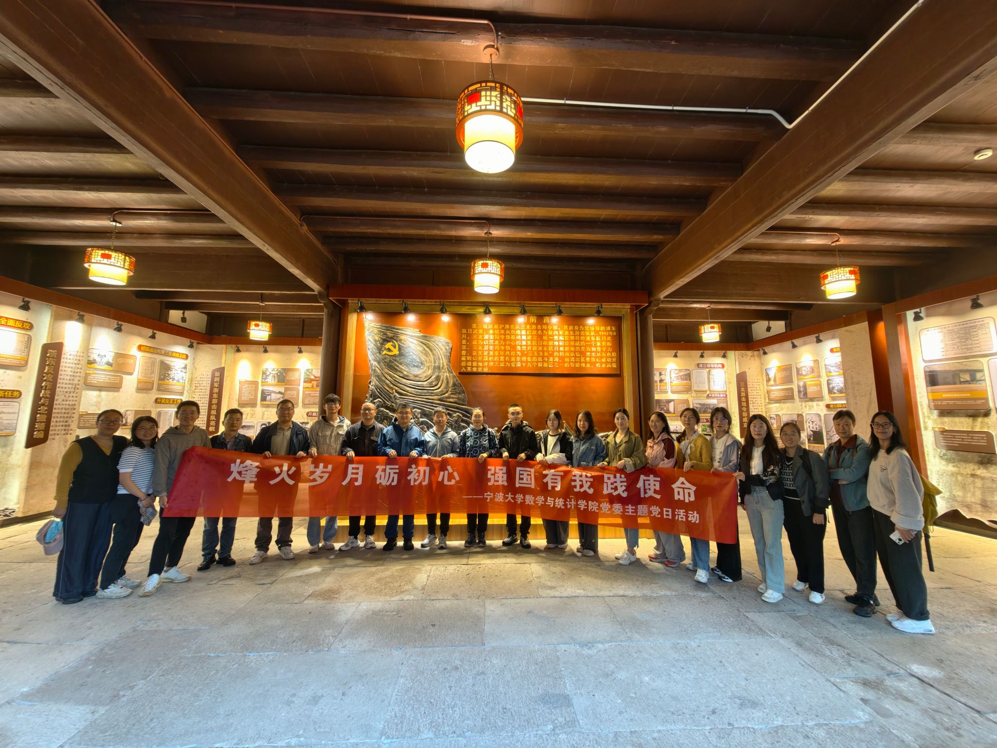 在抗战胜利八十周年这一具有特殊历史意义的年份,为深入学习贯彻习近平新时代中国特色社会主义思想,传承和弘扬伟大抗战精神,引导教职工党员厚植爱国情怀、筑牢信仰之基,10月30日,宁波大学数学与统计学院党委组织各教职工党支部前往三北游击司令部旧址,开展 “重温抗战历史,汲取奋进力量” 主题党日活动。
