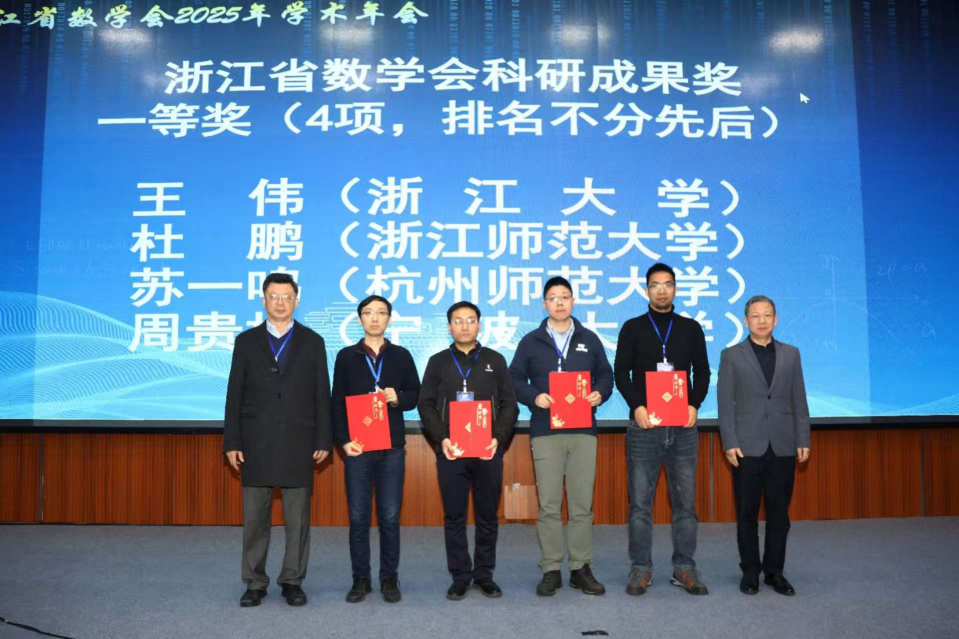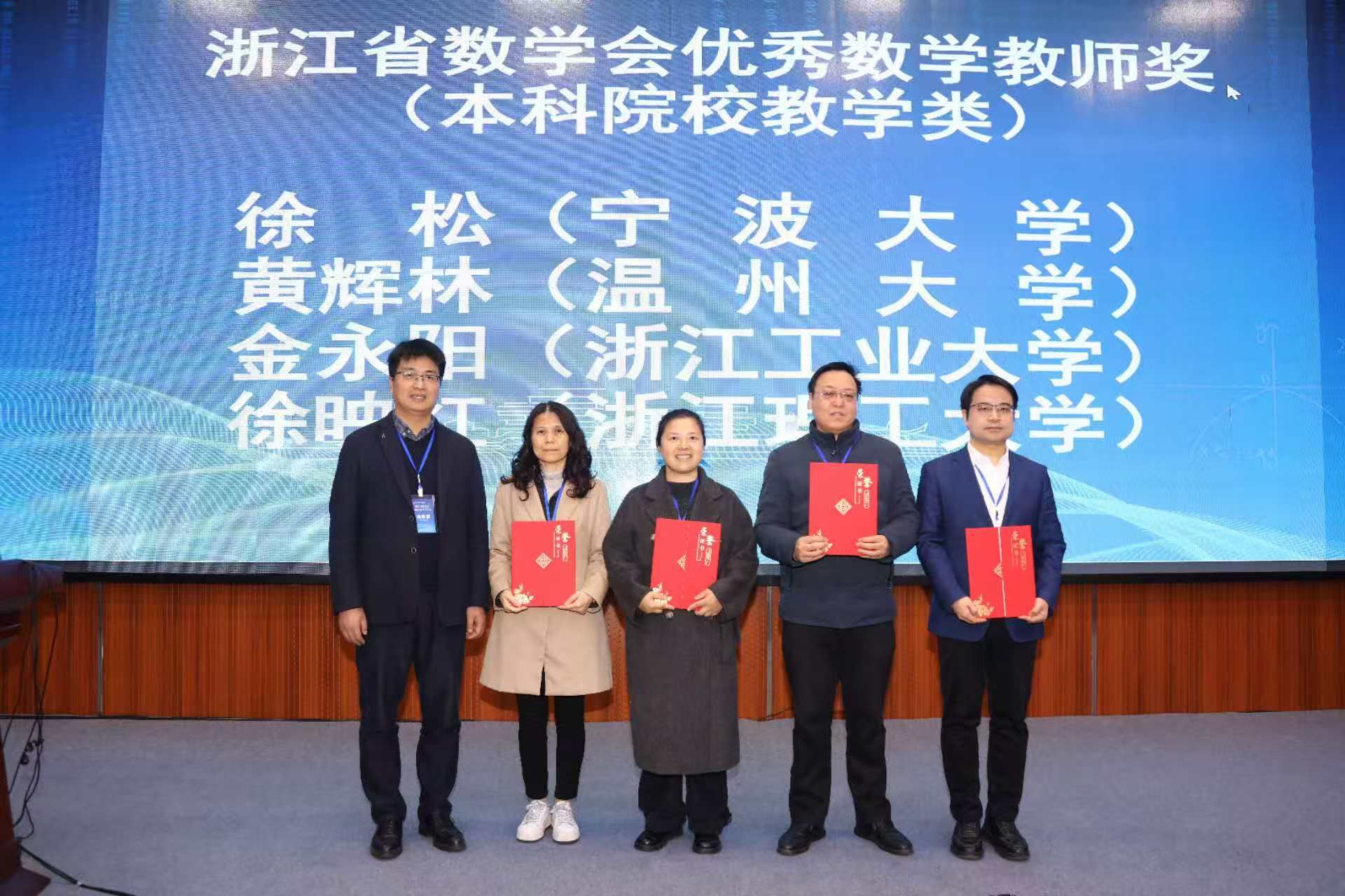 会议期间,举行了浙江省数学会科研成果奖和优秀数学教师奖颁奖仪式。奖仪式由浙江省数学会秘书长、浙江大学徐翔教授主持。我校数学与统计学院徐松老师荣获“优秀数学教师”称号,周贵松老师荣获“科研成果一等奖”。两位教师的获奖,体现了宁波大学在数学教学与科研方面的扎实积累和突出成果。