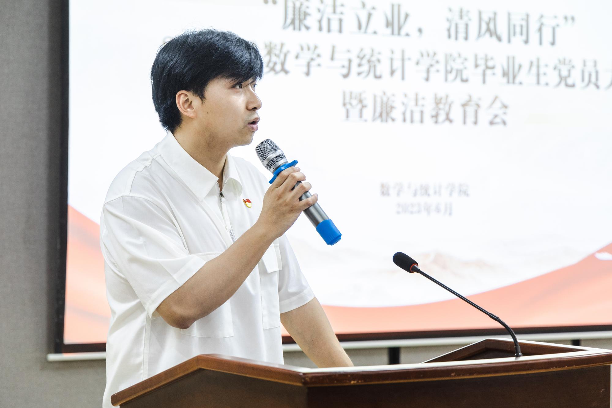 为深入开展学习贯彻习近平新时代中国特色社会主义思想主题教育,扎实推进廉洁文化建设,进一步强化毕业生党员意识、提升毕业生党员廉洁意识,扣好“人生的第一粒扣子”,6月19日,数学与统计学院开展了“廉洁立业 清风同行”2023届数学与统计学院毕业生党员大会暨廉洁教育会。
