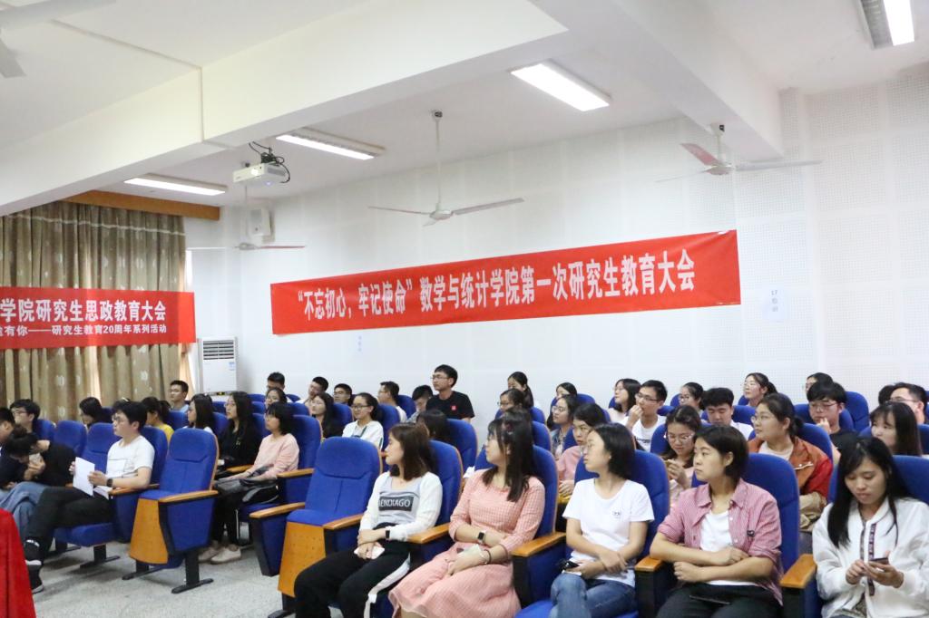为深入学习贯彻党的十九大和全国教育大会精神,帮助研究生牢记国家时代使命,培养严谨治学态度,提升学术研究能力,对研究生的学习生活要求有更深入的认识,我院于6月13日下午在龙赛理科楼北楼311会议室举办“不忘初心、牢记使命”主题教育活动暨研究生教育大会。学院党委书记俞金波,副院长曹炜,辅导员张宾出席会议,17级、18级全体研究生参加了此次大会。