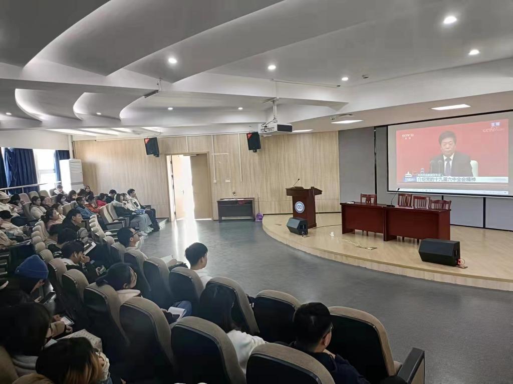 1112日上午10时,中共中央就党的十九届六中全会精神举行新闻发布会。成人影视片 师生准时在包玉书9号楼113报告厅组织集中观看直播,学习全会的精神。