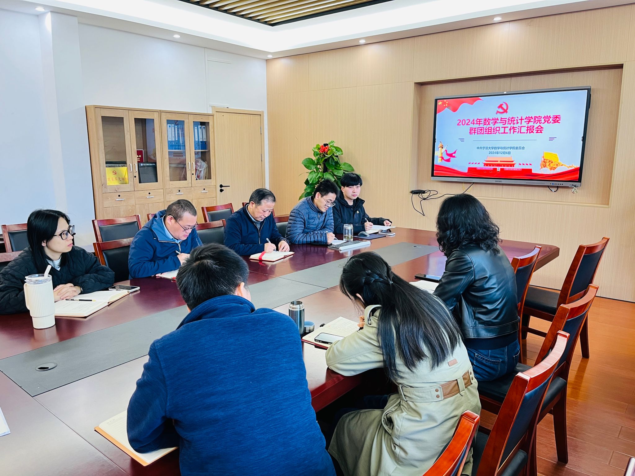 12月6日,数学与统计学院党委在包玉书9号楼218会议室召开2024年第24次党委(扩大)会议,专题研究工会、共青团工作。会议由学院党委书记主持,院党委班子成员、分工会主席/副主席、分团委书记参加会议。