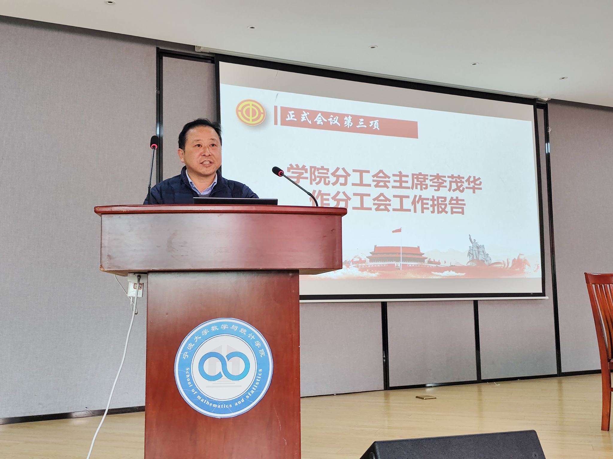 2月21日上午,数学与统计学院分工会按照工作计划,并报请校工会批准,在学院113报告厅召开学院第二届第二次教职工暨工会会员代表大会。本次双代会应到人数37人,实到35人,符合法定人数。会议全程由书记霍妍主持。