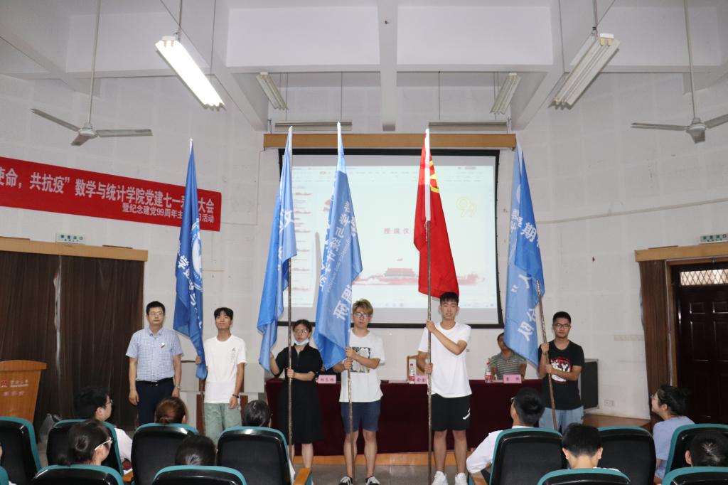 仪式上,2019年暑期社会实践校级优秀团队代表关旭桐同学参加本次仪式,为社会实践团队分享了自身的实践历程与感悟,鼓励他们在社会实践中展现当代青年的风采,为全面建成小康社会汇聚青春力量;随后,本次社会实践小分队队长刘致宇同学代表全体实践成员进行安全责任承诺,旨在提高成员们的安全意识,确保本次社会实践安全顺利进行;最后,俞金波书记为即将出征的实践团队授予队旗,期待本次社会实践收获的丰厚成果。