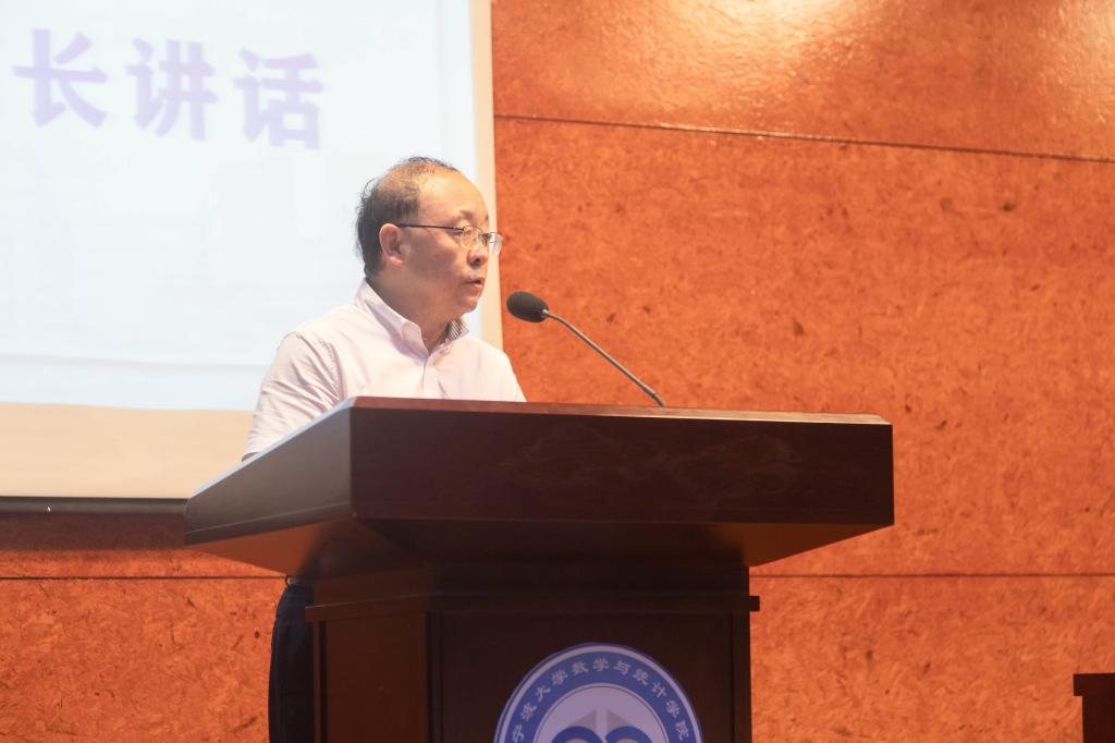 最后,院长屈长征教授发表讲话。他首先表达了对于新生的欢迎与美好祝愿。接着,他介绍了数学学院近年来所取得的优异成绩,同时他也希望同学们能够志存高远,胸怀报国之志,为数院,为宁大,为国家,创造更美好的未来。
