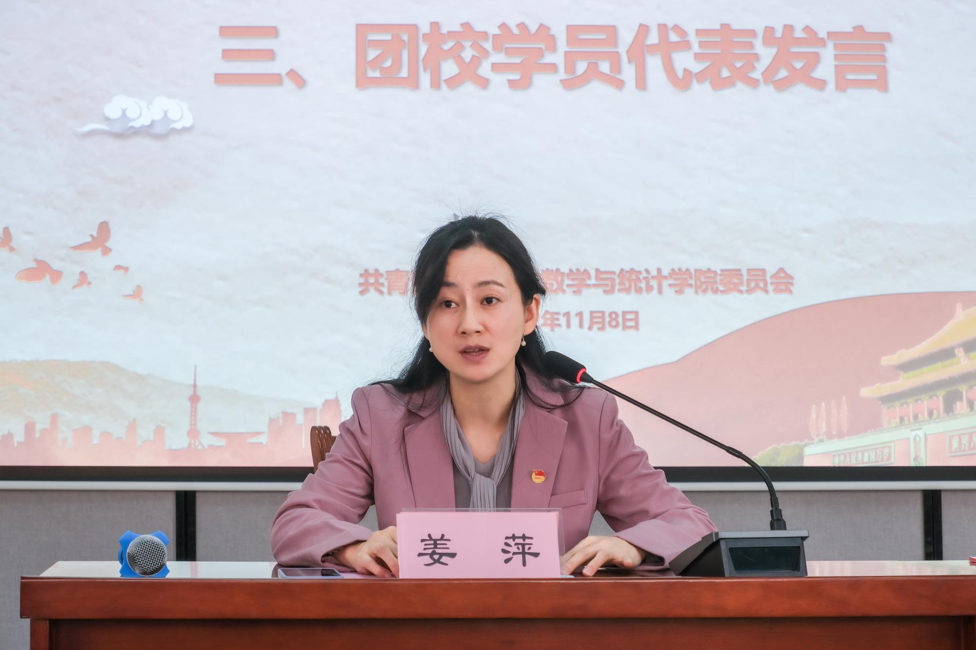 2022年11月8日,数学与统计学院第四期团校开班典礼于9号楼113报告厅顺利举行。党委副书记姜萍老师、团委书记陈佳雯老师,以及学院全体团学组织学生干部和入团积极分子出席本次开班仪式。