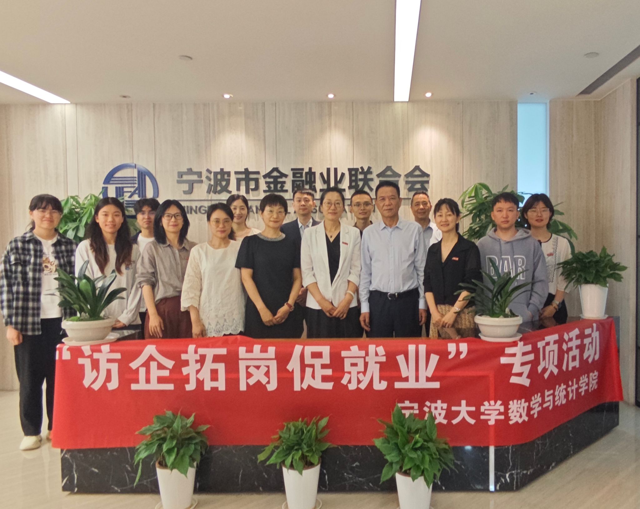 为深入贯彻落实教育部“访企拓岗促就业”专项行动要求,拓宽学生就业渠道、深化校企协同育人,5月23日,数学与统计学院党委书记霍妍率队赴宁波市金融业联合会开展调研交流,并与1989级应用数学专业优秀校友、宁波市金融业联合会副秘书长陆孝素等开展座谈,共谋应用型人才培养新路径。